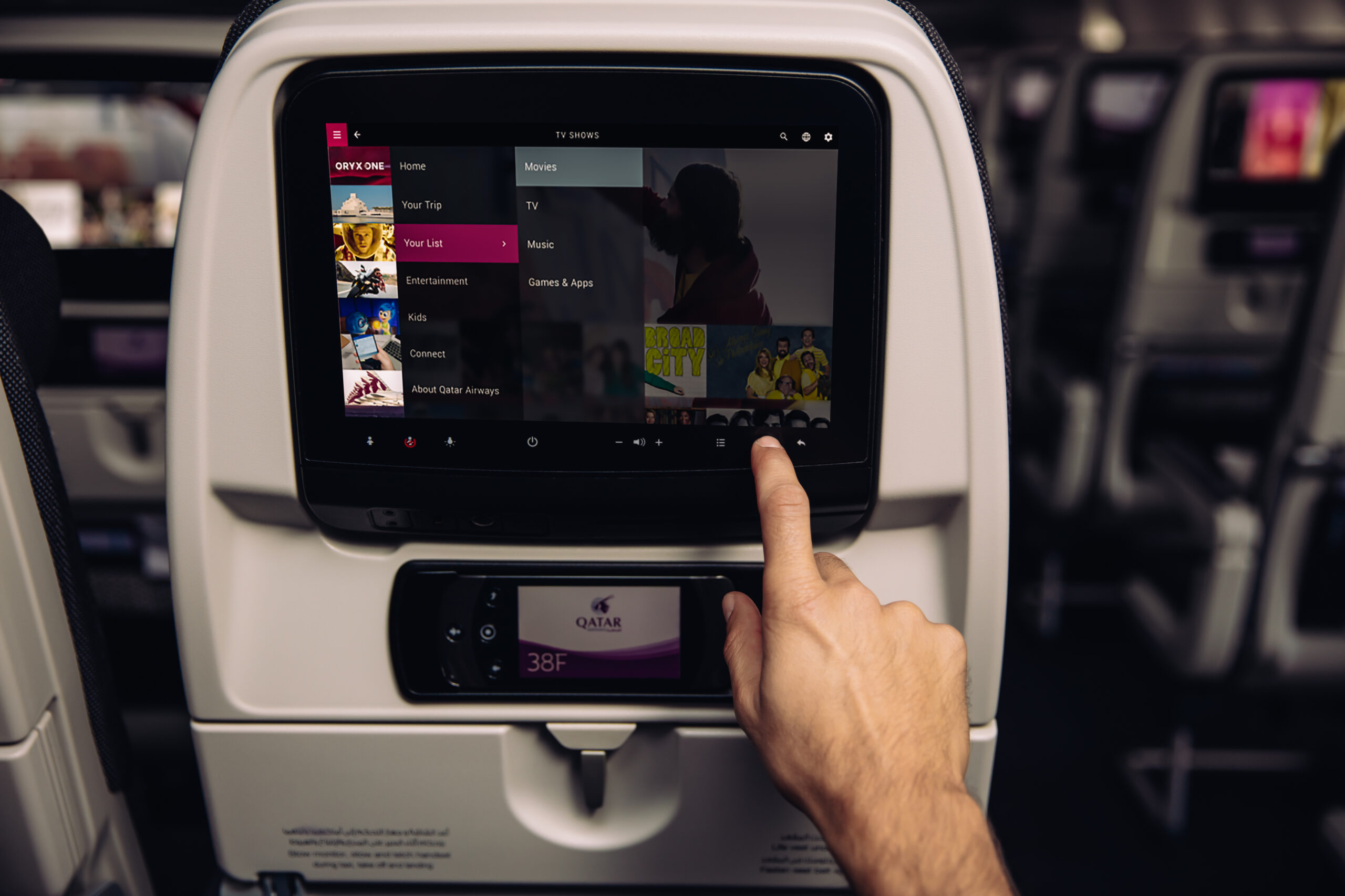 The Oryx One in-flight entertainment system offers one of the largest selections in the sky, with over 4,000 options including movies, TV series, music, games, and children’s programs.