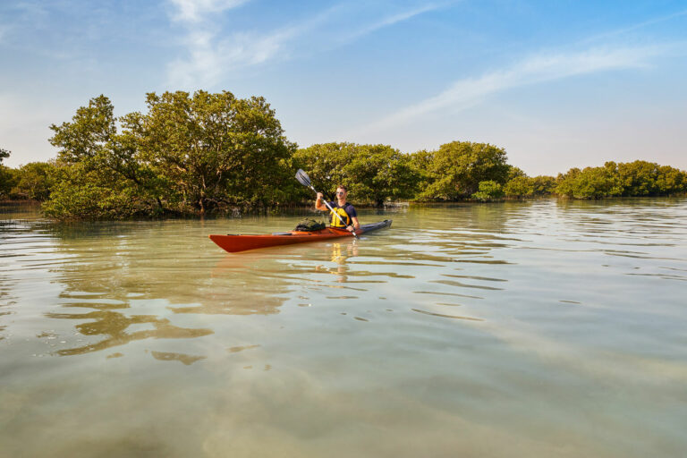 Discover a hidden side of Qatar in the Al Thakira mangroves. Kayak through calm waters surrounded by lush greenery and spot flamingos in the wild. A peaceful, unexpected escape into nature.